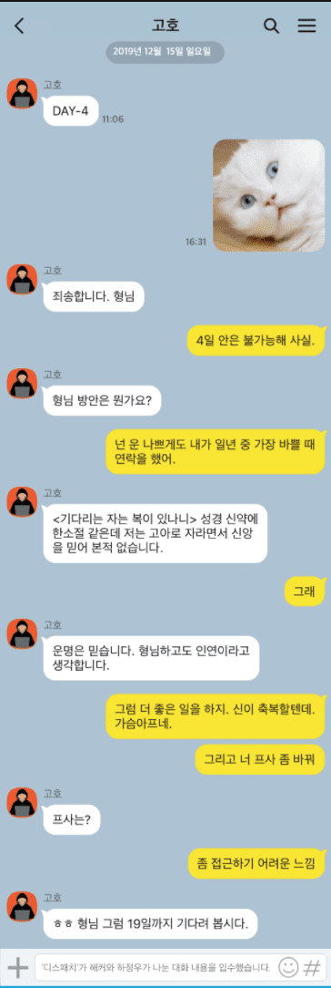 카카오톡 내용에서 하정우는 "지금 약 올리냐, 예의는지켜라""하루종일 오들오들 떨ㅇ면서 오들뼈처럼 살고있는데"라고 말하자 해커는(고호) "오해하지말라, 계속촐영이니 건강을 챙기라" 며 걱정? 해주는 태도를 보였습니다.