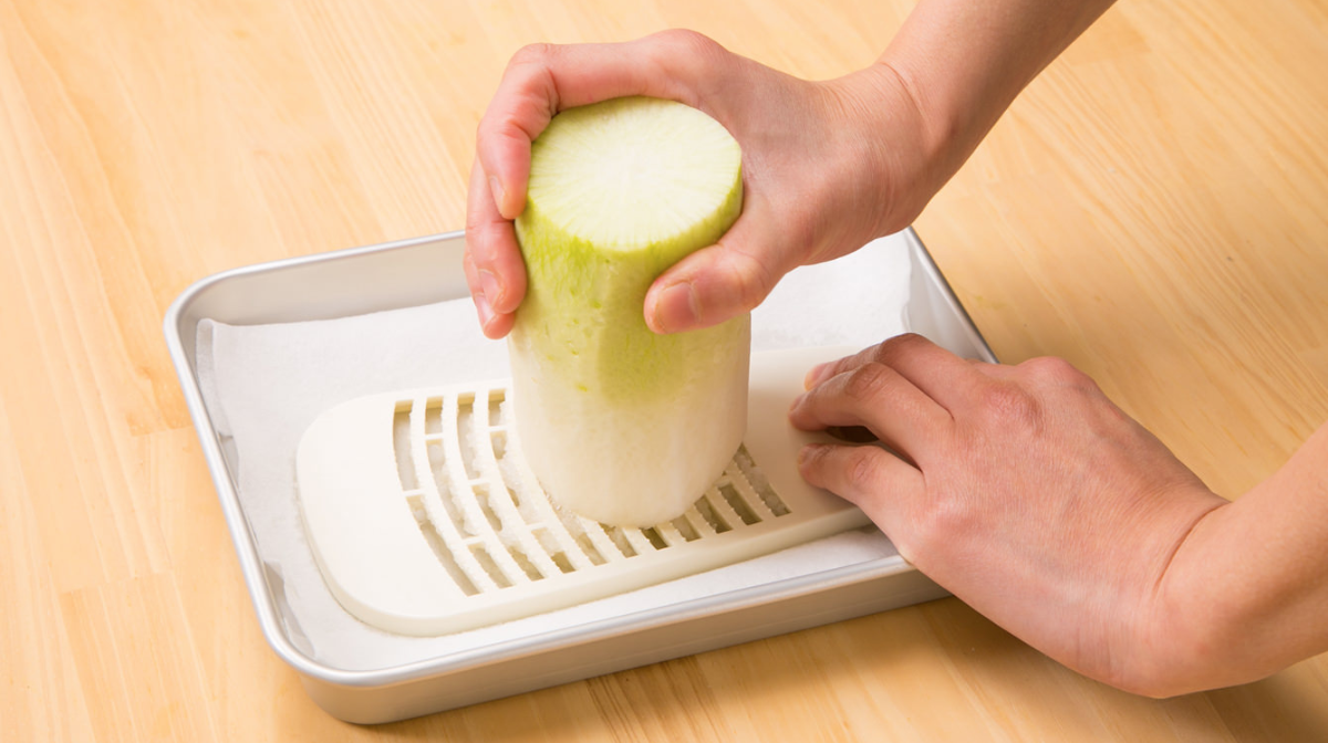 생선구이나 튀김양념 등 싱겁게 하고 싶지 않을 때는, 채에 무즙을 올려 두면, 무게로 간단하게 균일하게 물기를 제거할 수 있습니다.