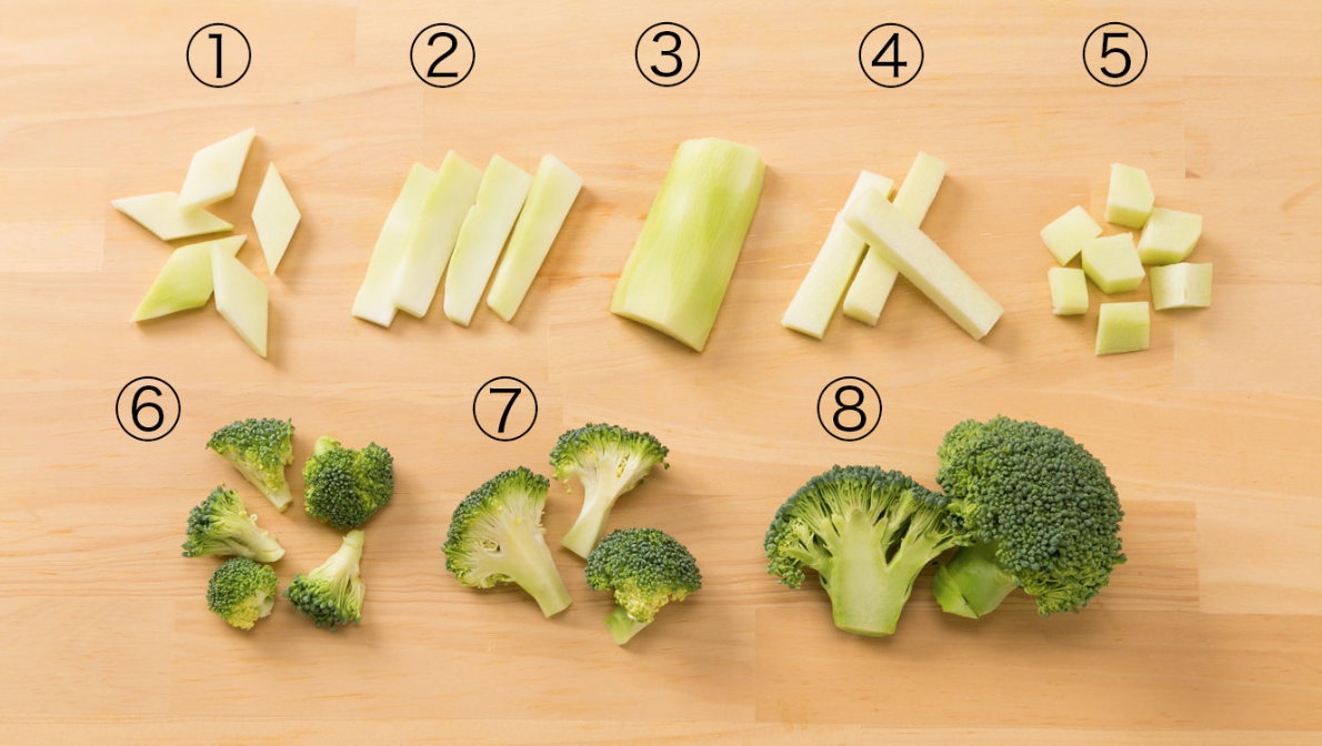 작은 브로콜리라면 통째로 삶아도 OK. 줄기의 딱딱한 부분을 잘라 단면 십자가의 노치를 넣으면 불의 거리가 균일합니다.