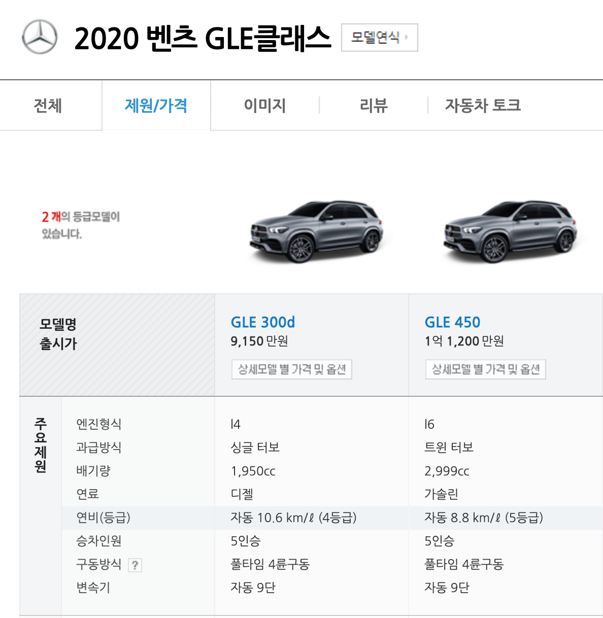GLE 450가솔린 경우 1억200만원 정도가 됩니다.