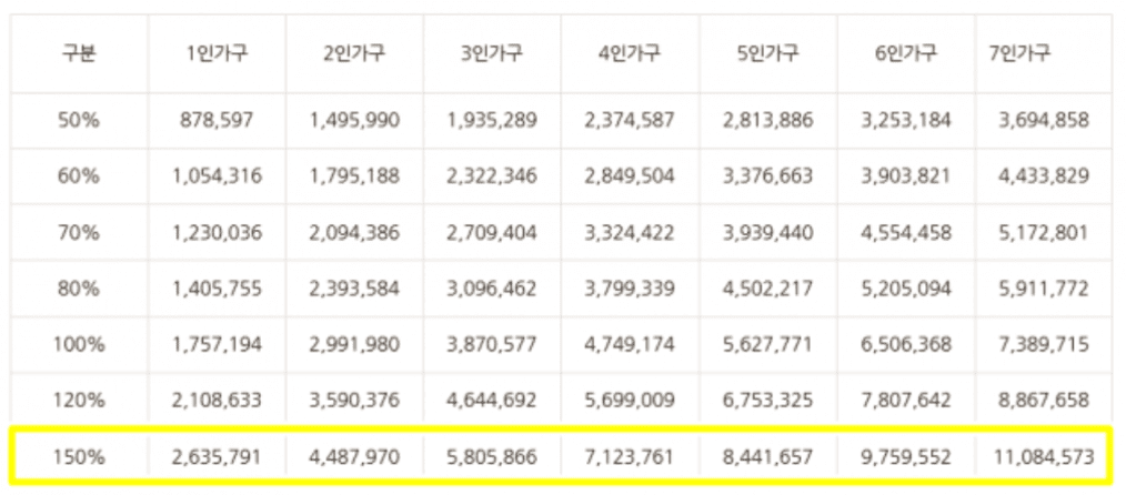 중위소득 기준은 가구에 따라 건강보험료 본인부담금으로 확인가능 합니다. 이어 가구원 수에 따라 지급기준이 차등지급되며 자세한 내용은 아래의 자료를 살펴보시길 바랍니다.
