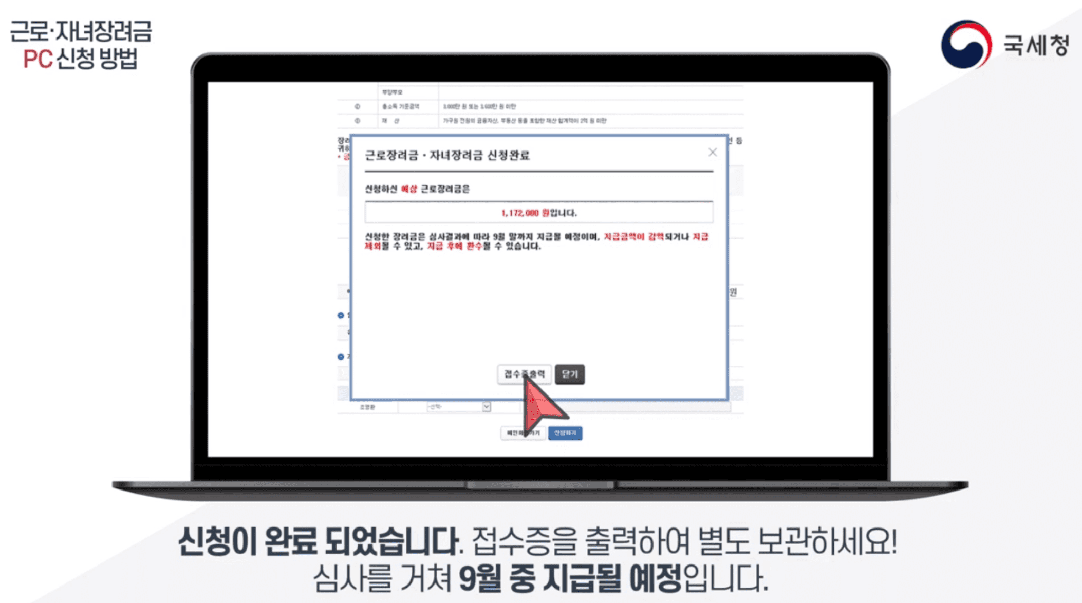 5. 신청 완료후 접수증 출력 별도보관 (심사후 9월중 지급예저)