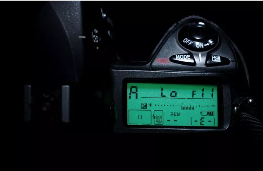 최고급 Nikon 디지털 SLR : 상단 LCD에 "A"가 표시 될 때까지 후면 조절 다이얼을 돌리면서 "MODE"다이얼을 누르십시오. 그러면 전면 제어 다이얼이 조리개를 조정합니다.