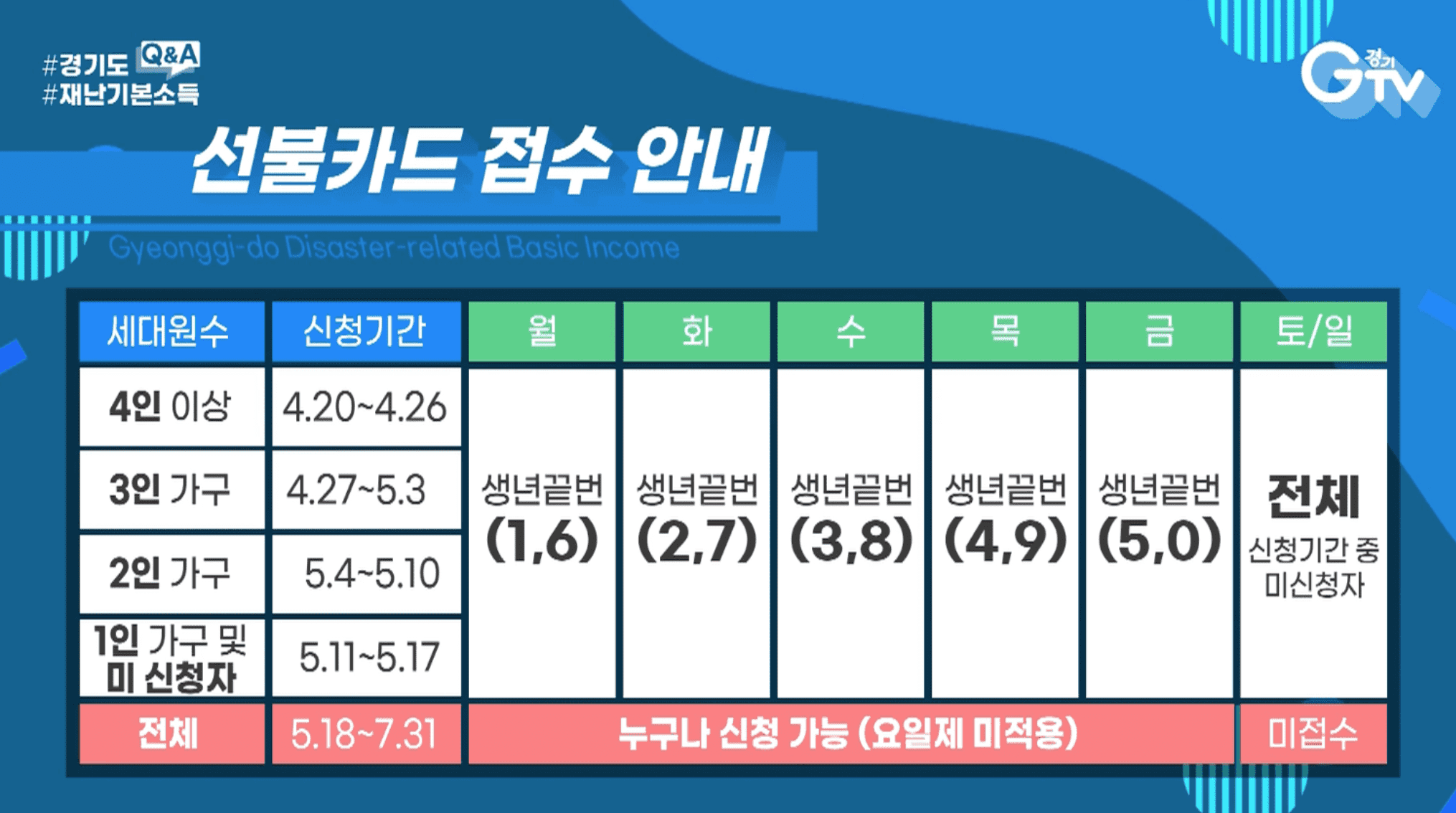지원금 신청시기 (가구원수에 따라 다름)