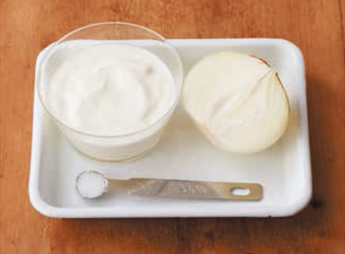 비피더스균이 풍부한 요구르트와 수용성 식이섬유가 풍부한 양파를 함께 섭취할 수 있는 양파 요구르트는 장내 플로라를 가꿔주는 최적의 메뉴. 얇게 썬 양파의 매운맛을 레인지에 날리면 요구르트와 소금을 더해 하룻밤 재우기만 하면 된다.그냥 먹어도 카레에 섞기도 하고 어레인지 하는 것도 가능합니다.