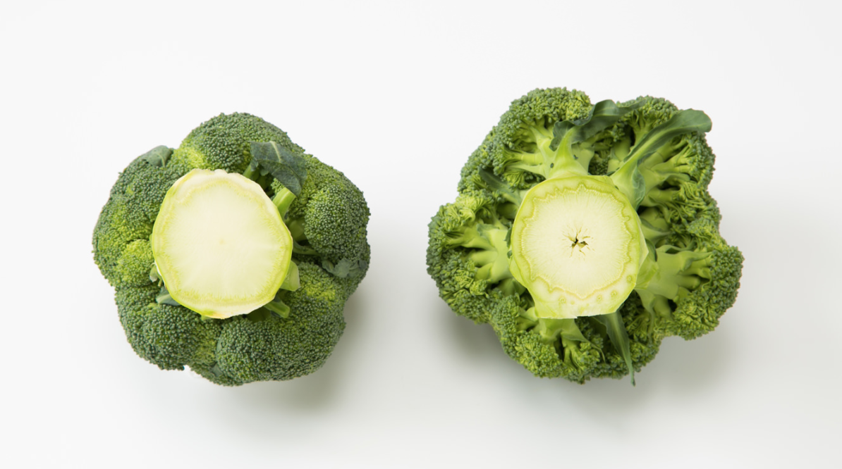 사진 왼쪽처럼 줄기의 단면이 싱싱한 것을 선택합시다. 중심까지 신선한 것은 부드럽고 단맛이 있습니다.
