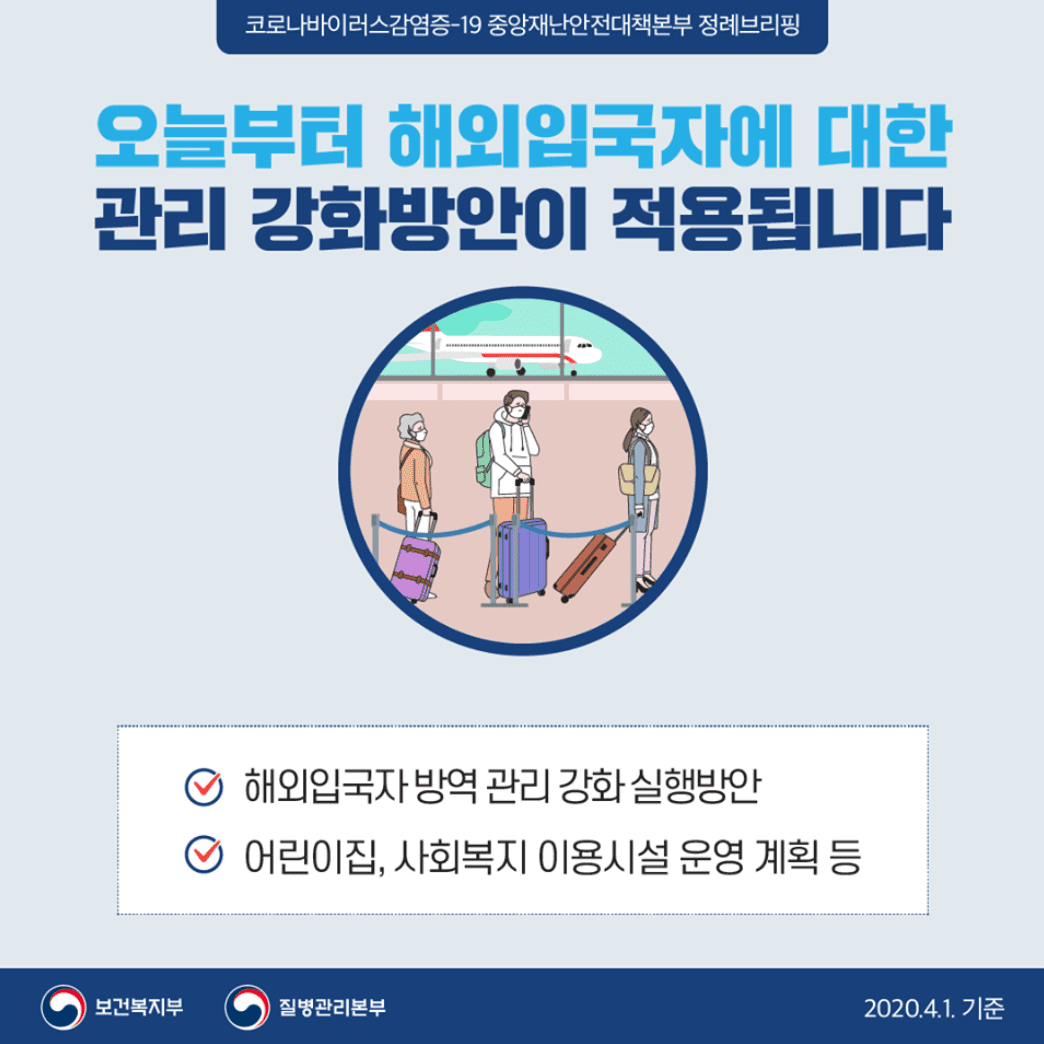 대한민국 정부에서는 해외입국자에 대한 방역관리를 강화합니다.