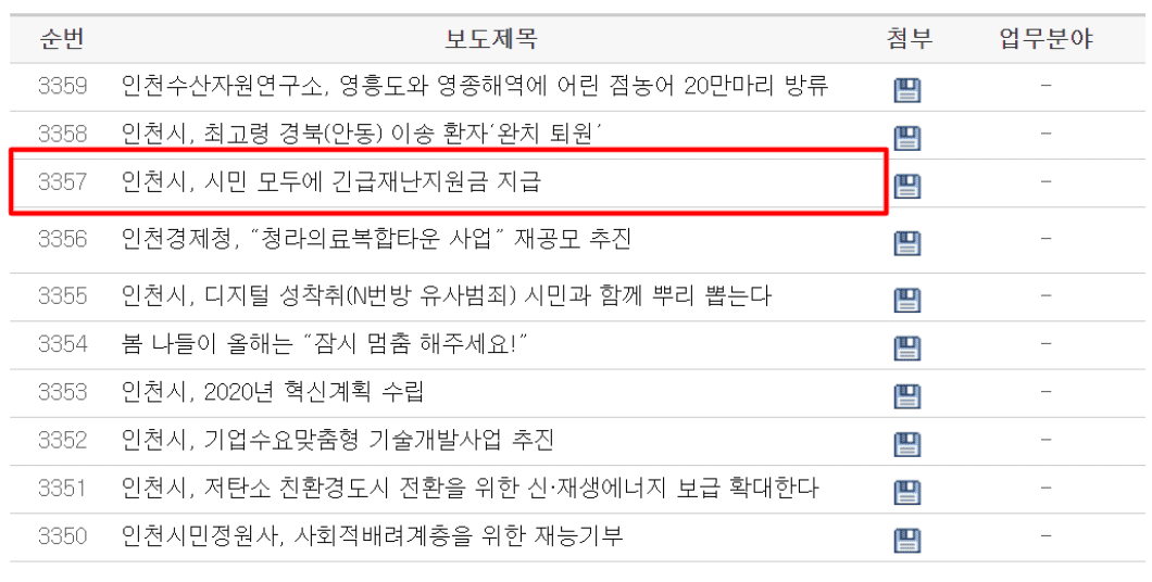 [3357번 글] 인천시, 시민모두에 긴급재난지원금 지금 게시글 클릭
