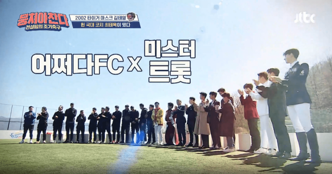 지난 12일 JTBC 뭉쳐야찬다 (어쩌면FC) 와 미스터트롯 (트롯CF)간의 축구대결이 펼쳐 졌습니다. 이날 방송에서는 미스터트롯 7인과 미스터트롯의 식구 나태주 노진훈이 함께 참가 했으며 진성 박현빈 역시 출연 했습니다.