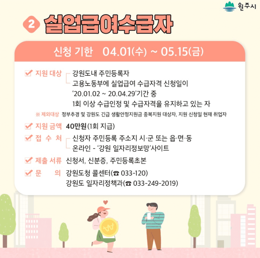 *제외대상 정부추경 및 강원도 긴급생활안정지원금 중복지원 대상자, 지원 신청일 현재 취업자