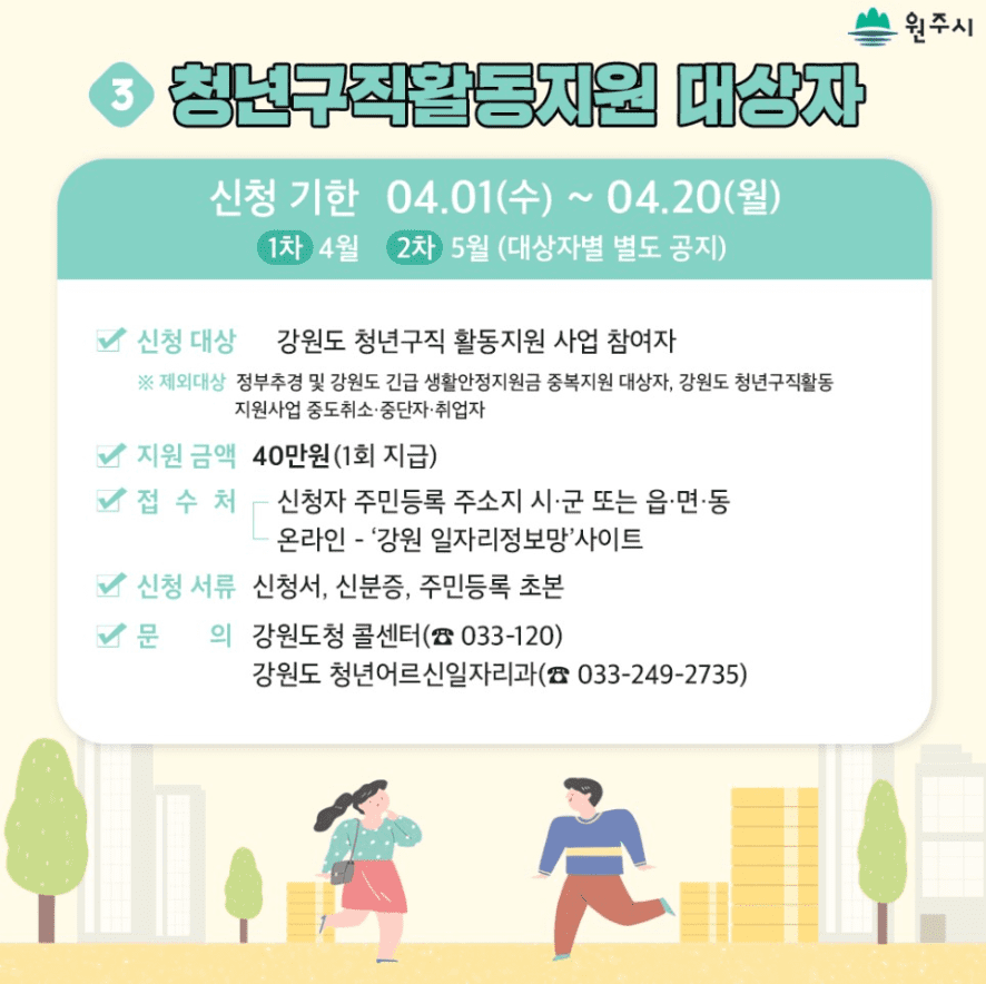 *제외대상 정부추경 및 강원도 긴급 생활안정지원금 중복지원 대상자, 강원도 청년구직활동지원사업 중도취소/중단자/취업자