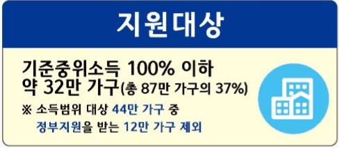 - 중위소득 100% 이하 가구로 건강보험료를 적용