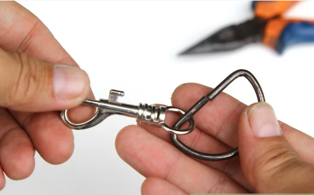 회전 고리를 d- 링에 부착하십시오. 고리의 작은 슬릿을 통해 고리를 밀어 넣을 수 있습니다.
