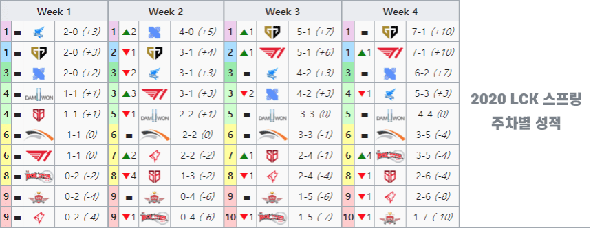2020 LCK 스프링 순위 : 2020LCK스프링 일정